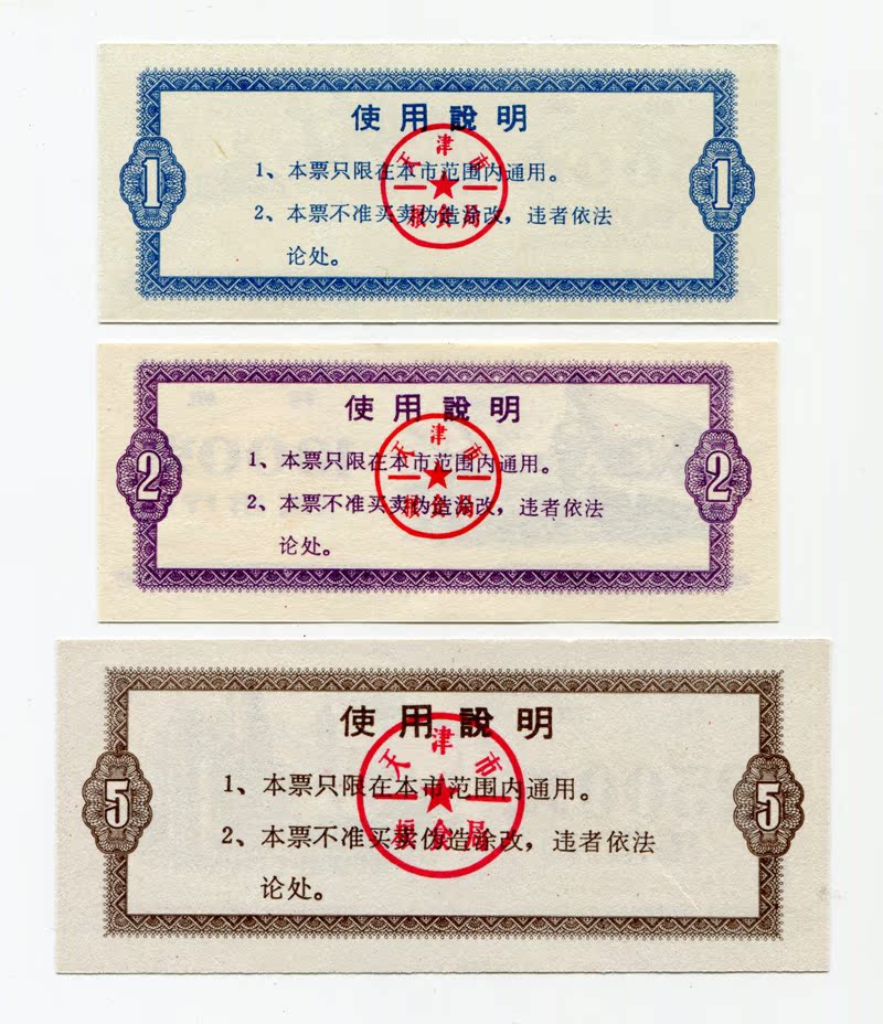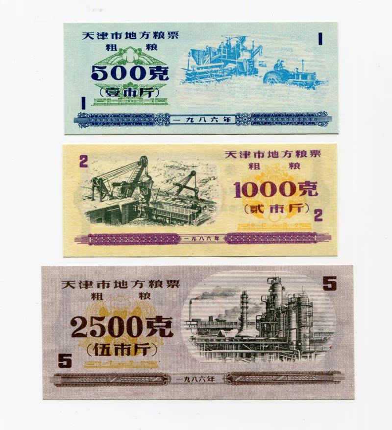(Fidelity) brand new 1986 Tianjin local grain ticket groceries Three pieces of original Pareal Money