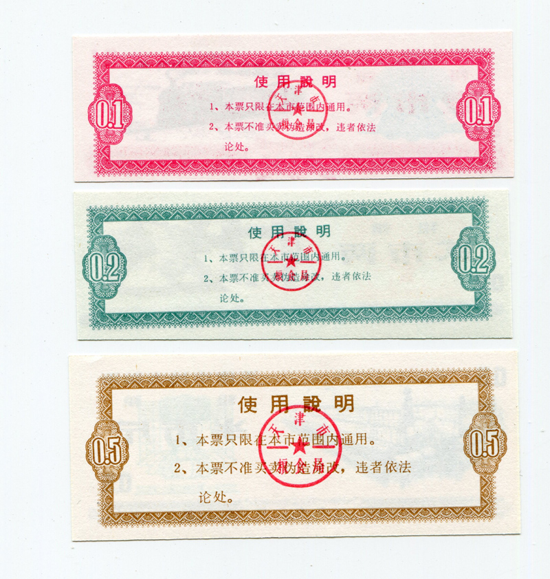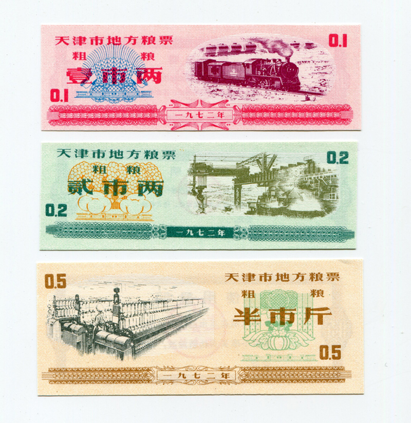 Brand new 1972 Tianjin local grain ticket "Miscellaneous Grain" Three Full Fidelity Coin Notes Ancient Play