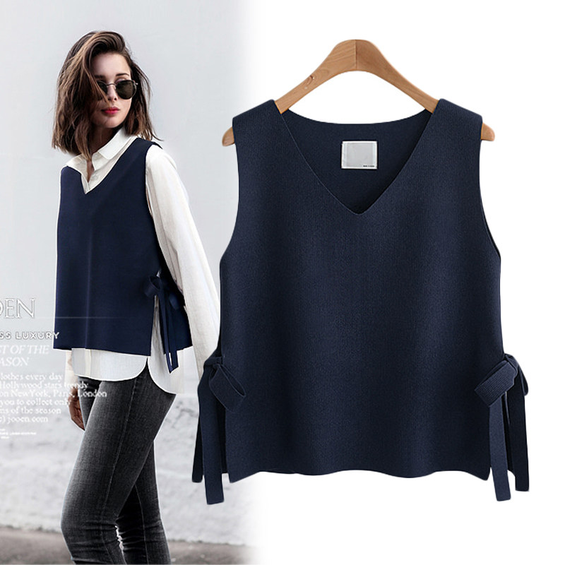 Europe station 2021 autumn and winter new knitted wool vest sweater vest woman V collar loose external hitch sleeve head sleeveless