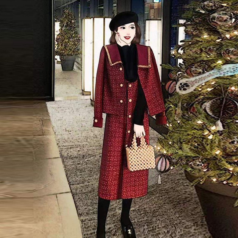 Xiaoxiangfeng suit 2020 autumn and winter women's clothing French platycodon red first love fairy Sen series celebrity Christmas dress