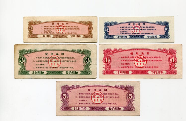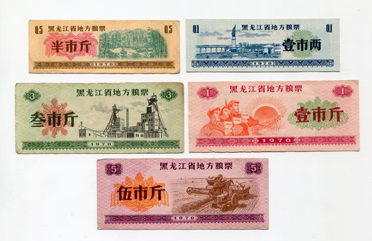 1970 Heilongjiang grain ticket full set of 5 original items 7-8 pint of ancient play antique numismatic numismatic palate
