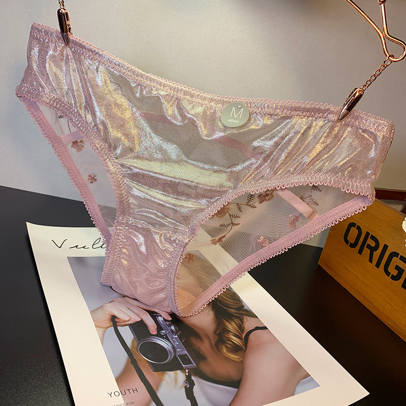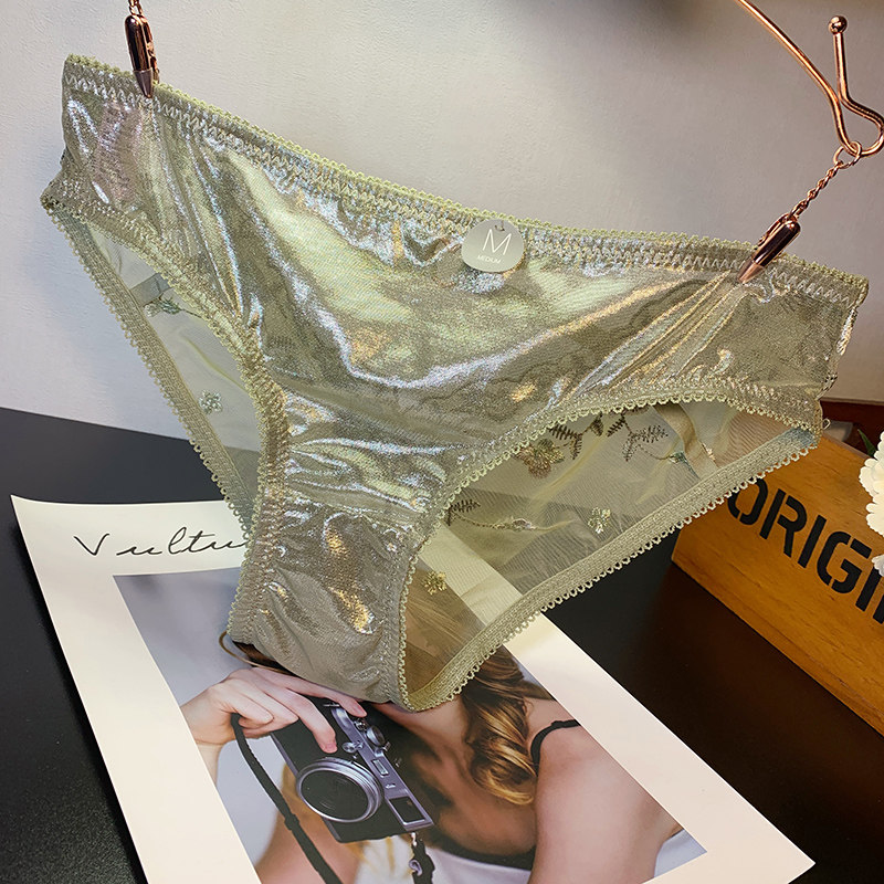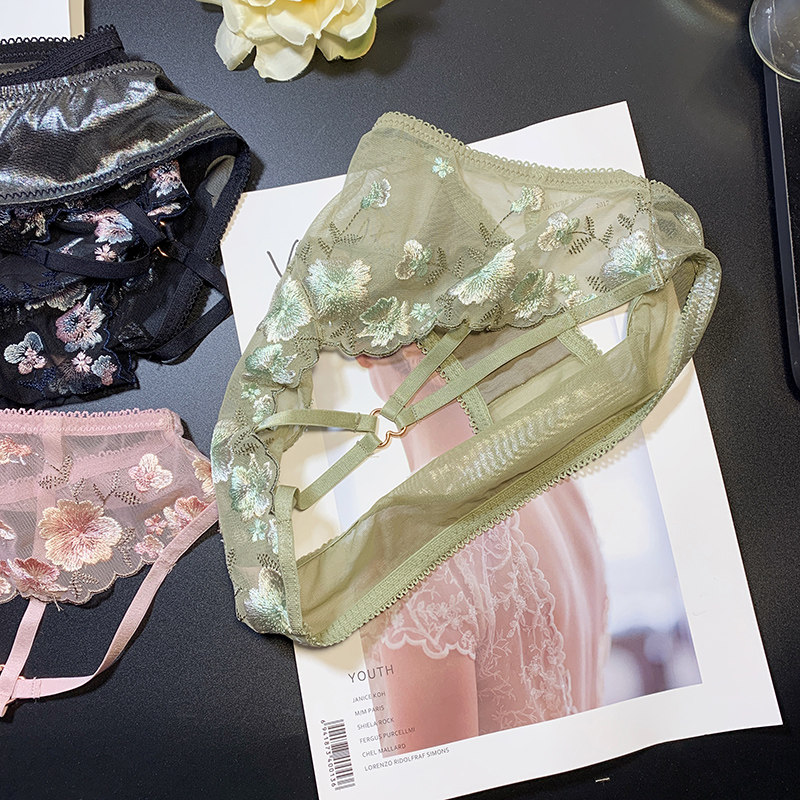 Embroidered Panties Lace Embroidered Sexy Jacquard Transparent Mid-Low Waist Hip Raise Ladies Princess Lace-Up Briefs