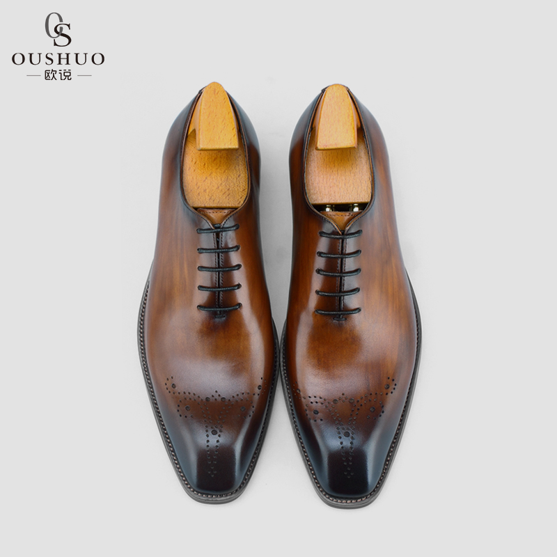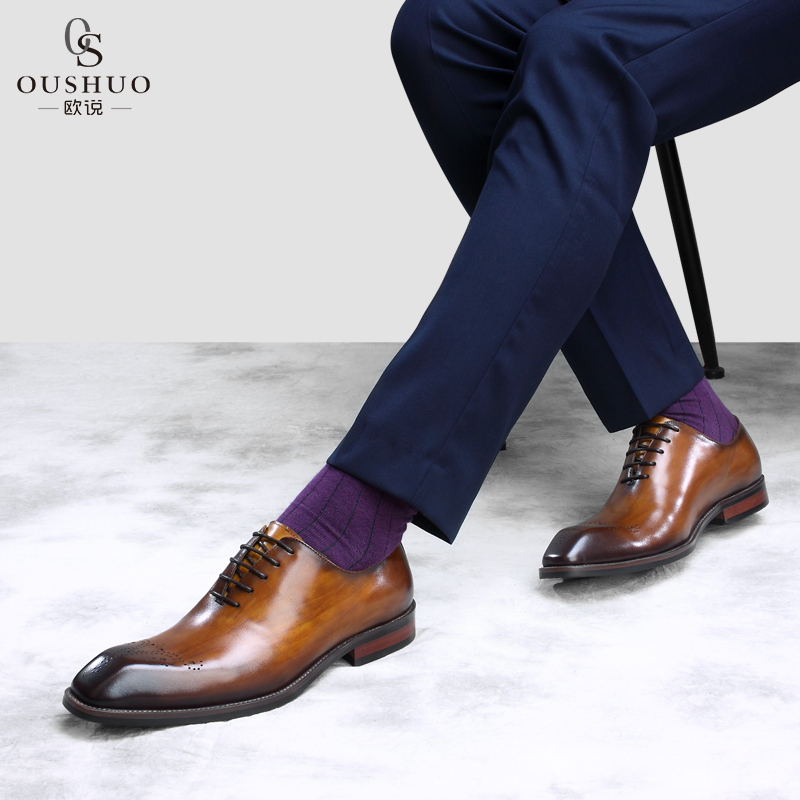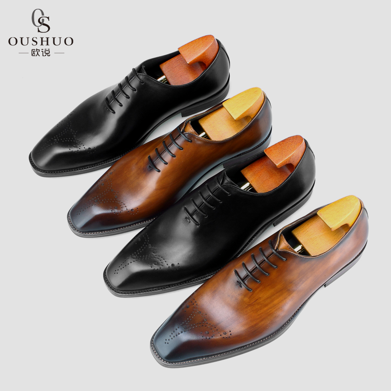 Ou said new formal leather shoes men's leather British youth brogue shoes men's black all-match business shoes