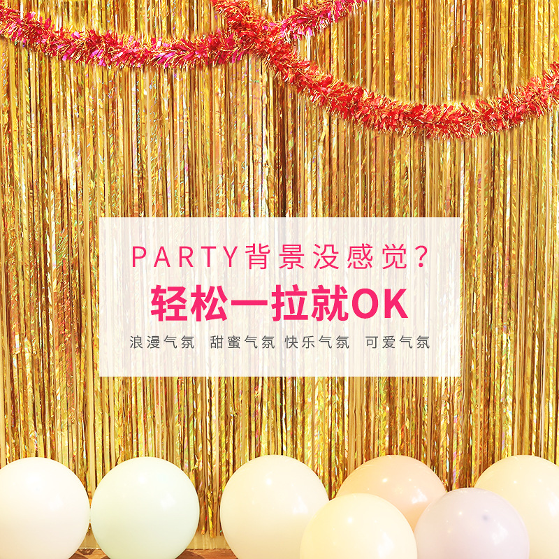 107 rain silk curtain background wall birthday balloon color strip rain silk ribbon decoration baby background tassel rain curtain ribbon