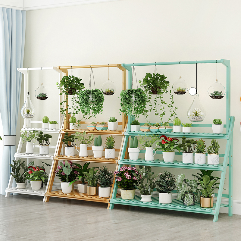 Solid wood Flower shelf Multi-meat indoor Living room Landing Style Chandelia Balcony Leaning Against Wall Hanging Gold Gge Flower Shelf