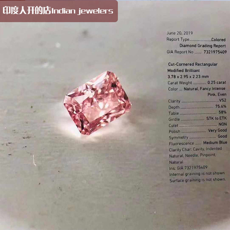 Color Diamond Powder Diamond Mat Type 0 25 Clay FancyIntensePink Colour Powder VS2 Net Degree GIA Certificate
