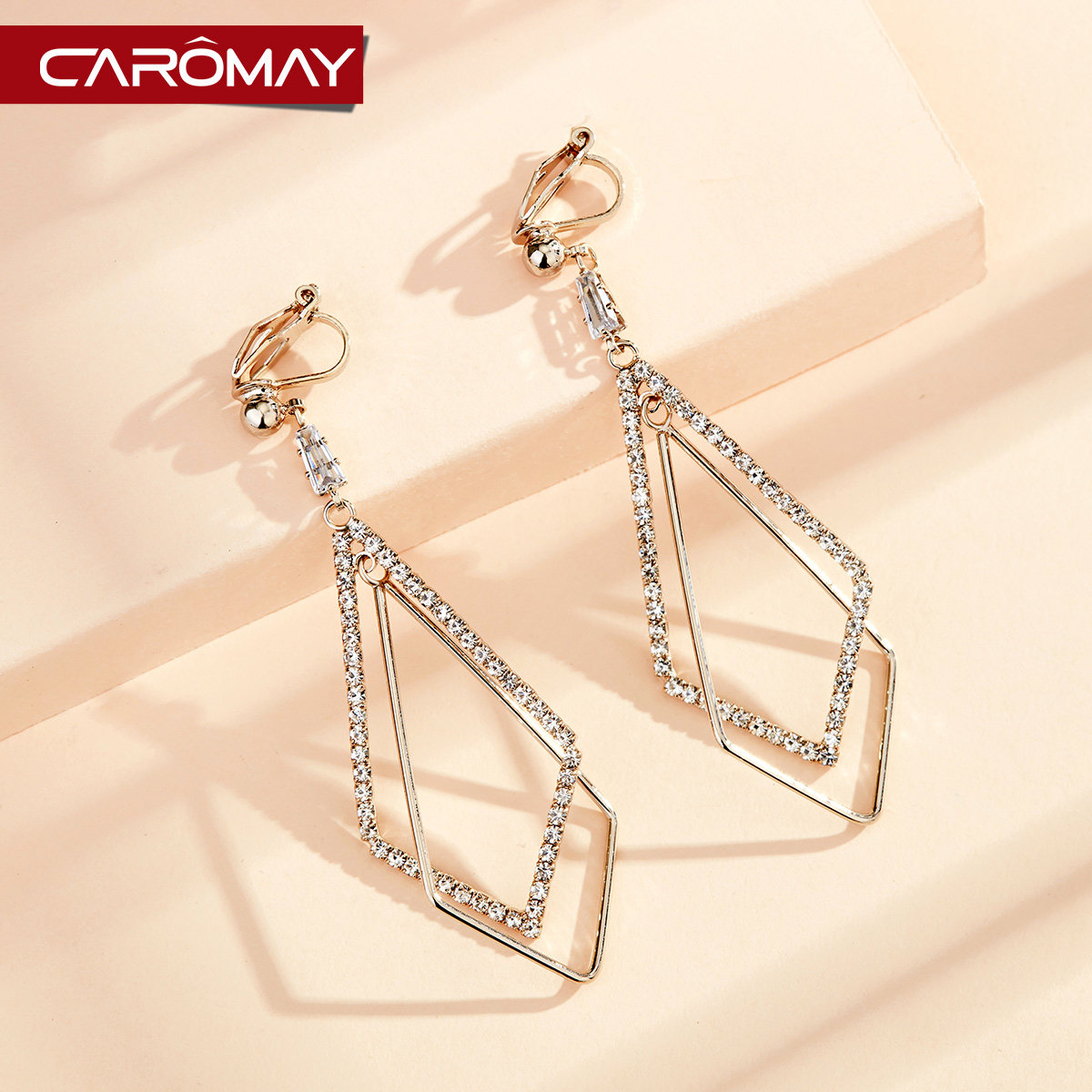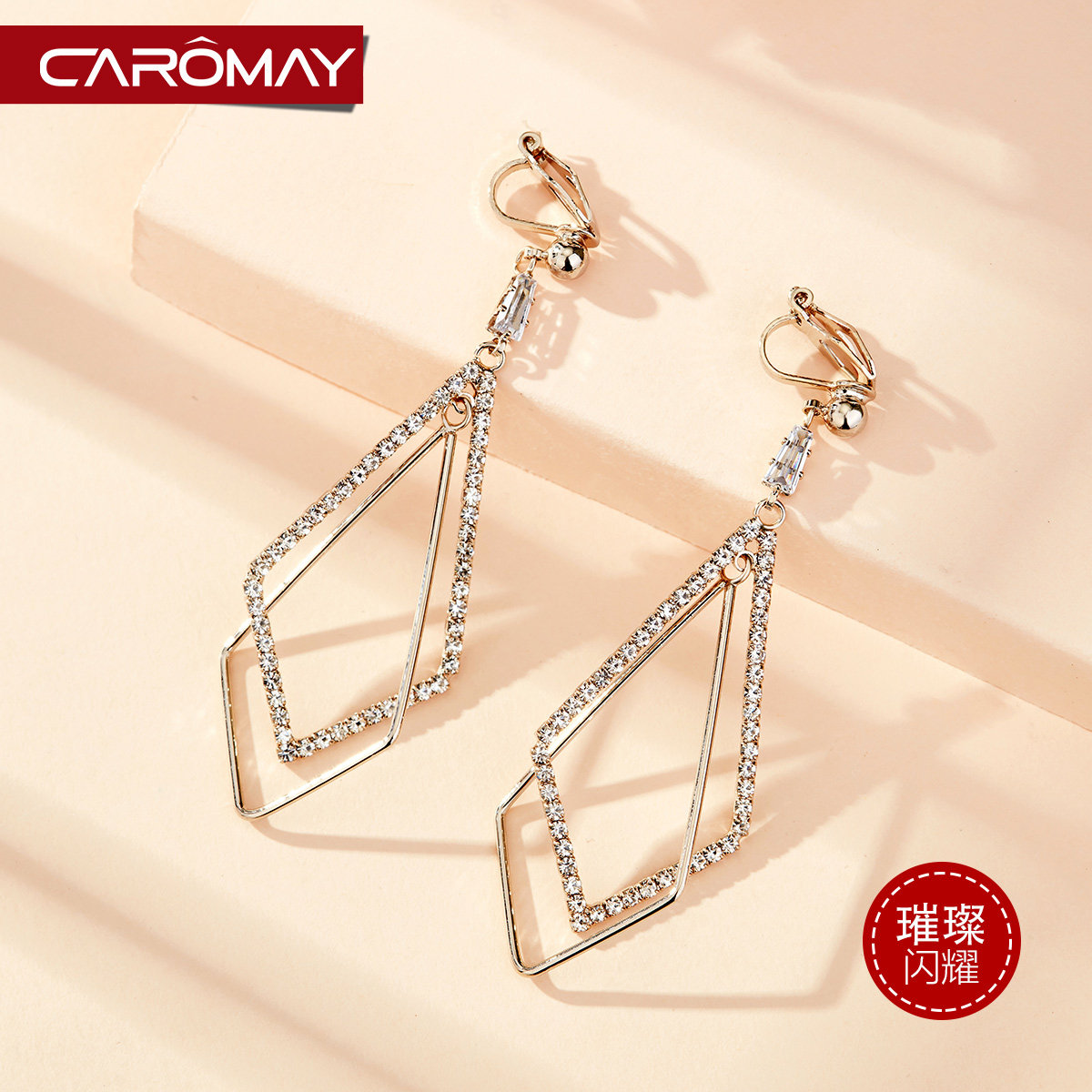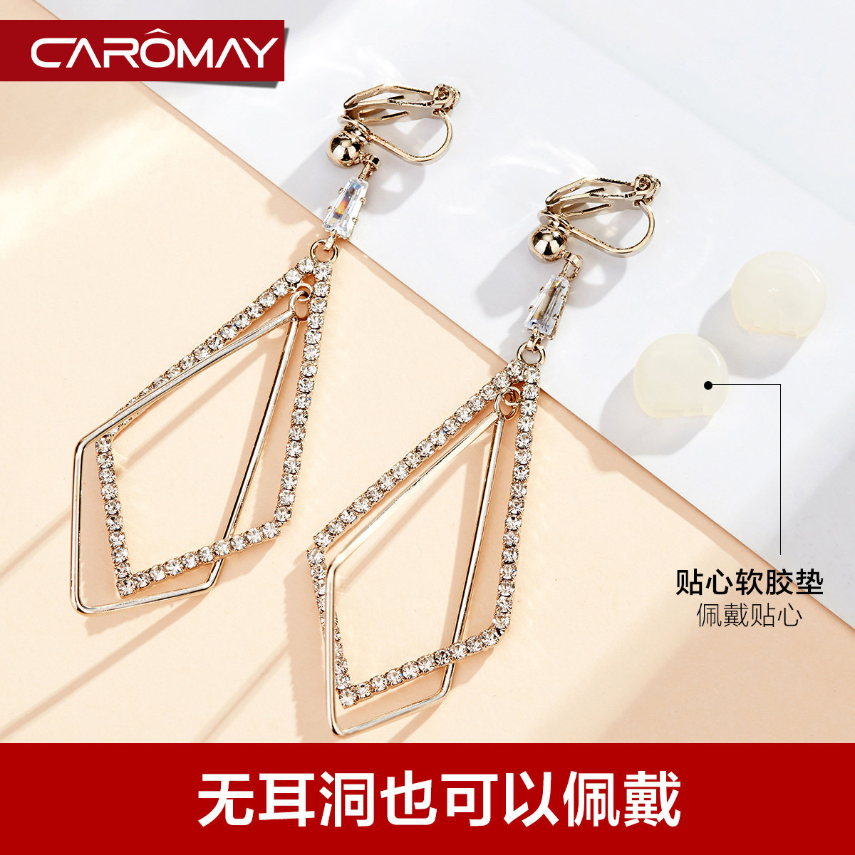 Geometric diamond-shaped earrings without pierced female ins big round face suitable earrings long version simple temperament net red earrings