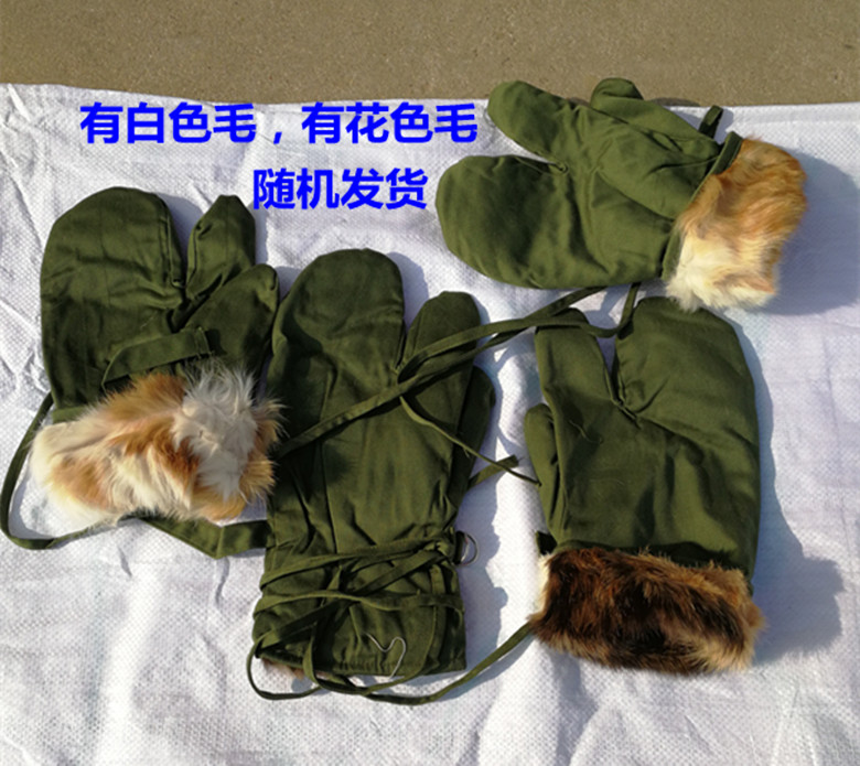 Men's outdoor three-finger rabbit fur wool gloves electric car riding anti-cold and warm outer glove fur integrated