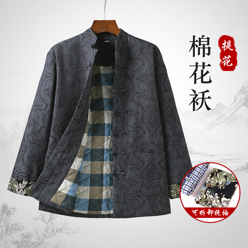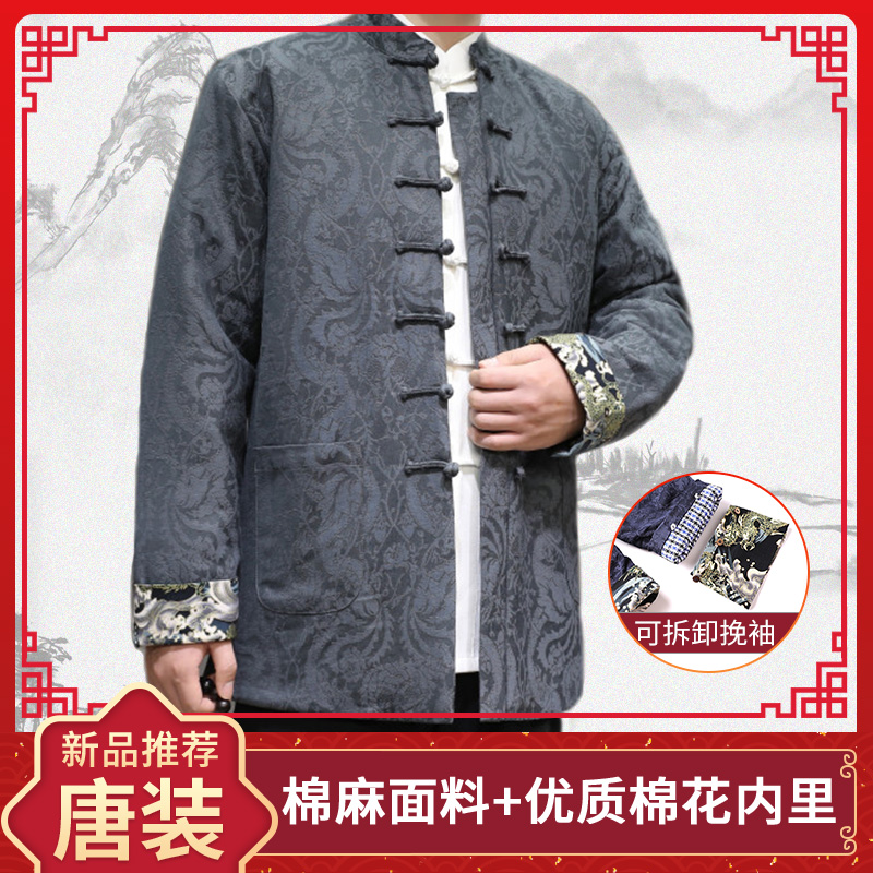 Tang suit cotton-padded jacket men's middle-aged and elderly cotton-padded clothes Chinese-style Hanfu cotton cotton-padded jacket linen jacquard autumn and winter coat thickened to keep warm