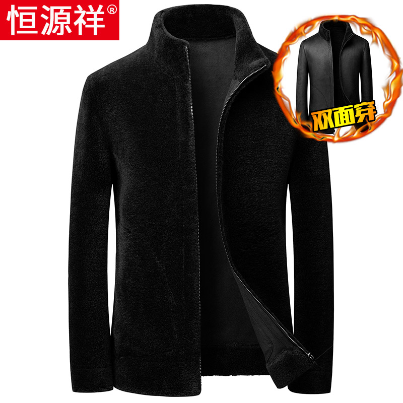 Hengyuan Xiang Winter sheep cut suede male short style big coat bifacial wearing fur integrated lamb grain suede leather grass jacket tide