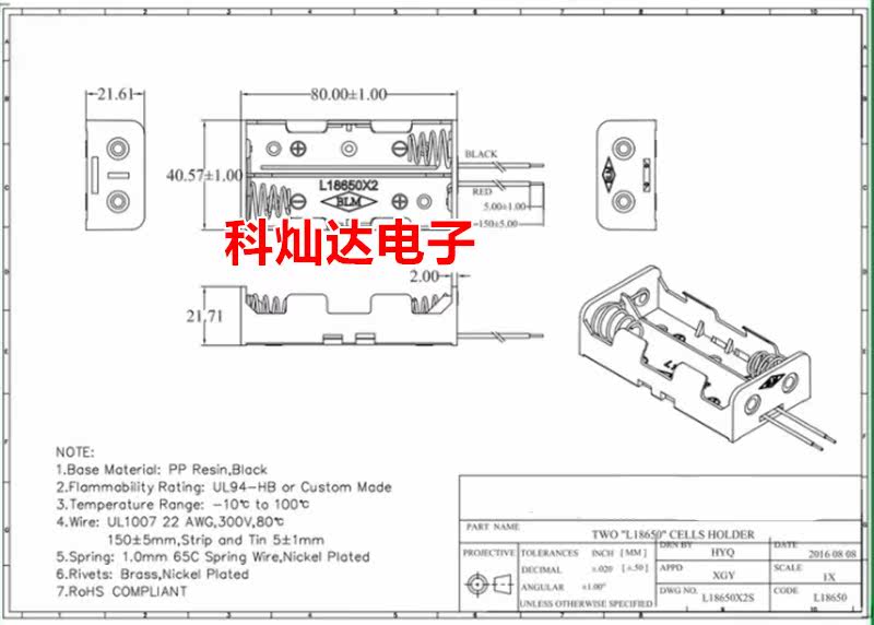 2 knots in series 18650 Battery case lengthened 18650 Battery cartridges Line can be equipped with protective plate battery 67-7