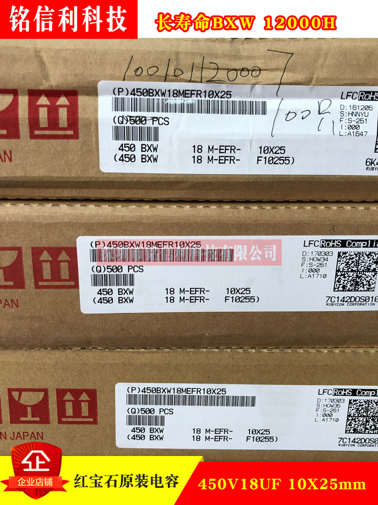 Japanese ruby aluminum electrolytic capacitor 450V18UF BXW Long Life RUBYCON replaces 400V15UF