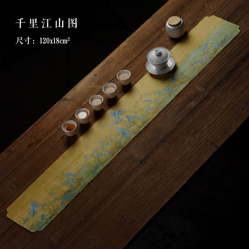 Thousands of miles of rivers and mountains map tea mat deerskin velvet raising pot tea table tea mat cotton and linen cloth table flag Chinese tea towel tea mat