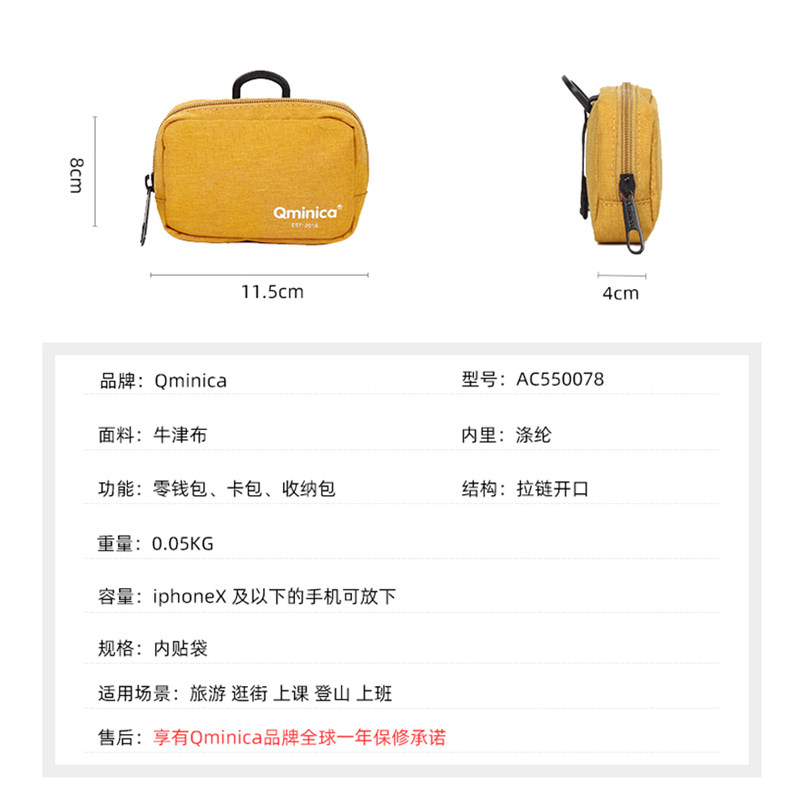 Qminica Waterproof Coin Pull Chain Card Bag Color Oxford Cloth Pure Color Portable Zero Money Containing Bag Anti-Wear Bag