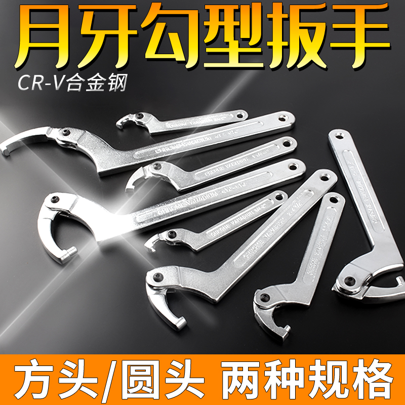 Adjustable crescent wrench Round head hook head hook type c type movable universal thickened hook head semicircular water meter cover shock absorber
