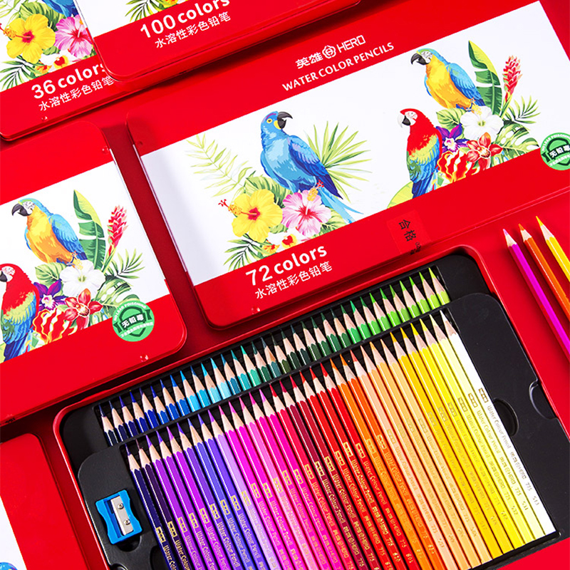 Hero color pencil 72-color water-soluble color pencil brush color pen professional painting set Hand-painted adult 100-color beginner 36-color student with 48-color painting water-soluble color pencil Oily