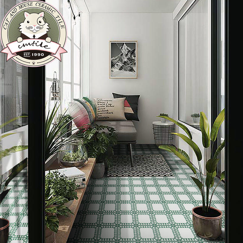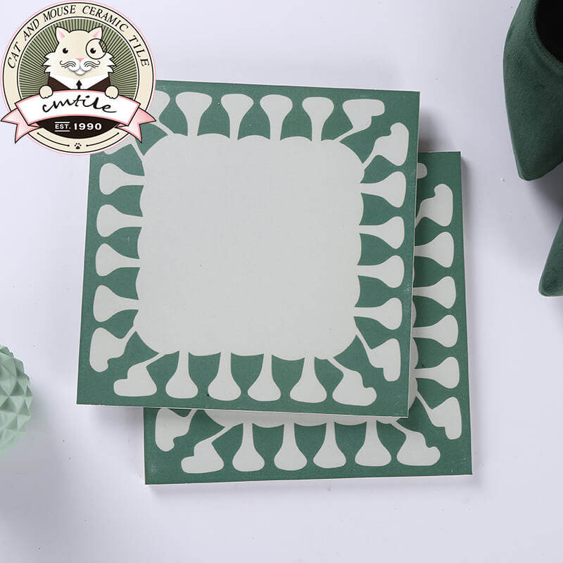 Ins ancient green art flower brick kitchen bathroom wall non-slip floor brick property dressing room impotence tile 200