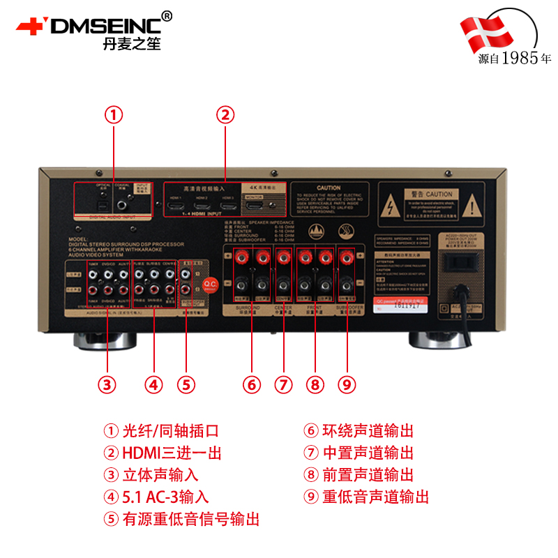 Danish 9600 home theater high power 5 1 amplifier household Bluetooth HD 4K amplifier professional