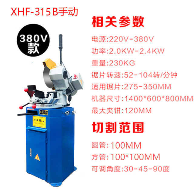 Xing Hengfeng 45 degree manual pipe cutting machine stainless steel cutting machine multifunctional circular saw cutting square pipe without Burr cutting machine