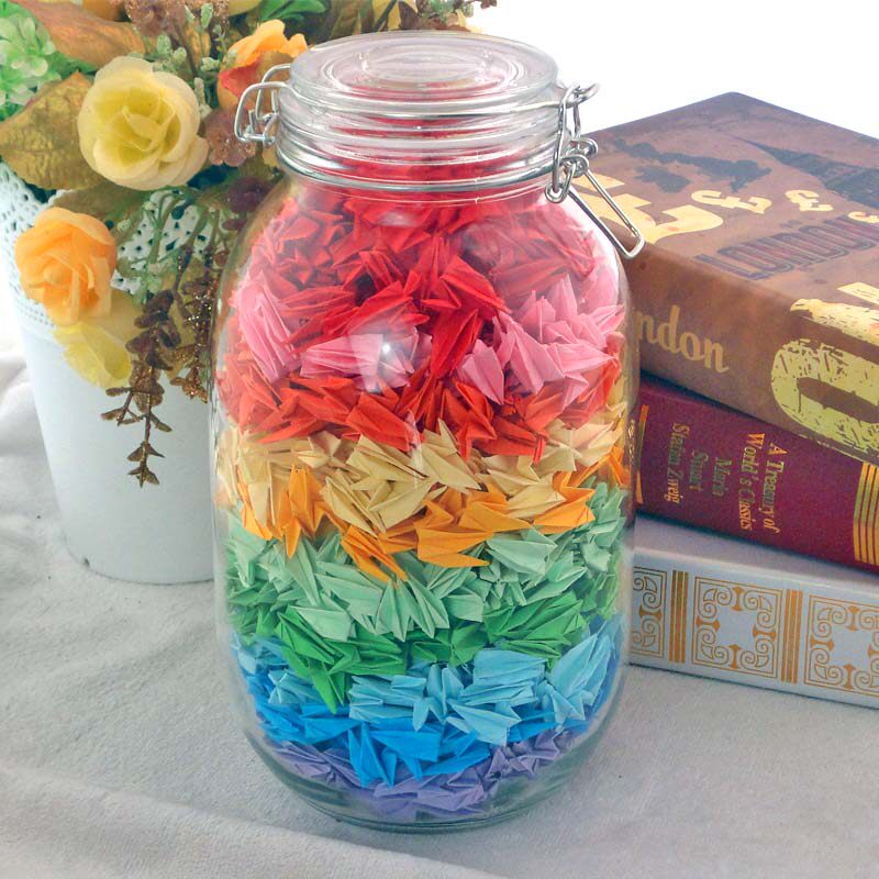 Empty bottle (1000 for 1000 made 1000) finished products 1000 paper cranes glass bottles 4 cm Colour handmade paper 1100 sheets left and right 5 cm Colour handmade paper 525 sheets left