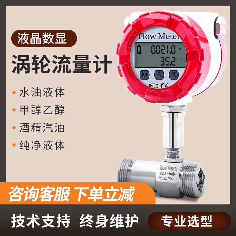 Turbine flowmeter liquid water pulse quantitative flow sensor electronic digital display methanol diesel stainless steel LWGY