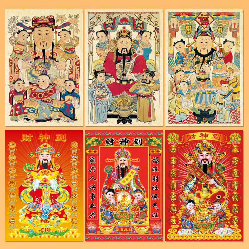 New Year and Spring Festival, please ask the God of Wealth portrait sticker Guan Gongwu God of Wealth to Wufu New Year painting door sticker decoration painting in the middle hall