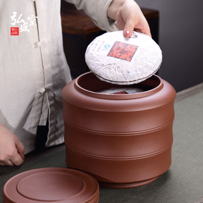 Yixing Purple Sand Tea Leaf Jars Large home Pu'er tank Ceramic moisture-proof Hermetic Deposit Tea Jar Seven Pie storage Tea vat