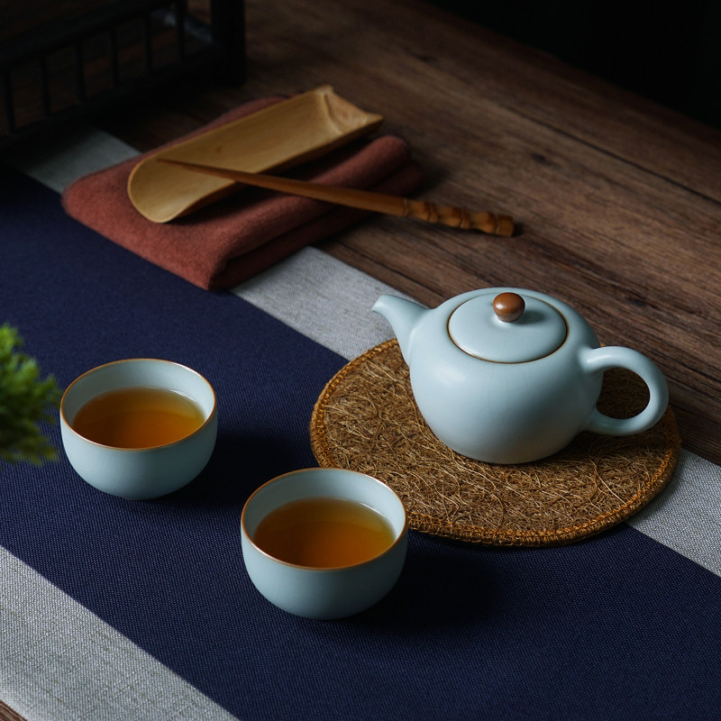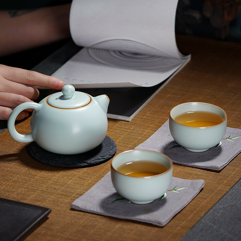 Ru kiln travel tea set with one pot of two cups of handmade bubble teapot portable minimalist Jingdezhen ceramic gift Chinese-Taobao