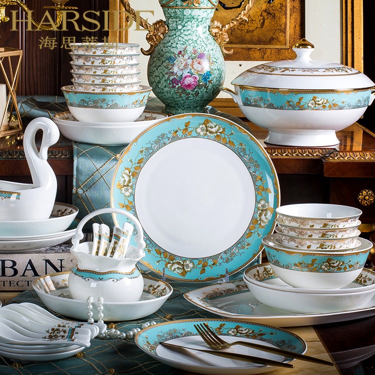 Heathtis Jingdezhen Bone Porcelain Tableware Set Group Light Extravagant Bowl Tray Combined Ceramic Rice Bowls dinnerware minimalist home