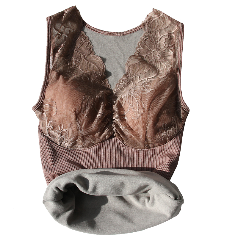 Pyrenno Poetry 10258 Comfort Eco Suede Warm Vest Woman Sensation Lace V Collar Free Bra Warm Underwear