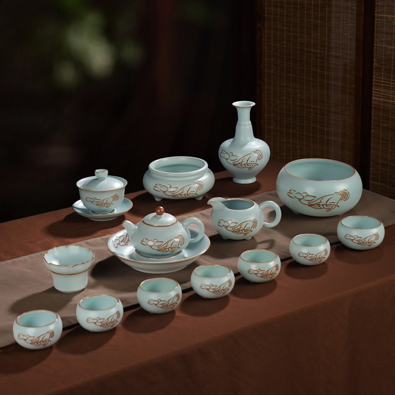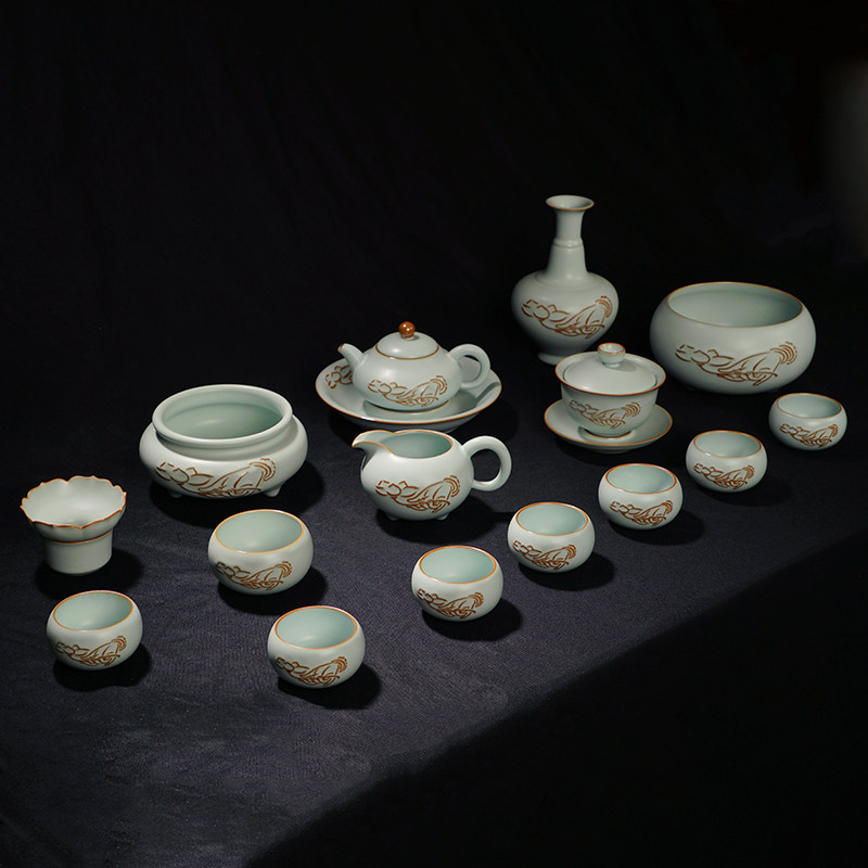 Qingyuan Yu kiln high-end tea set gift box Jingdezhen hand-made retro gift ceramic pieces can be maintained