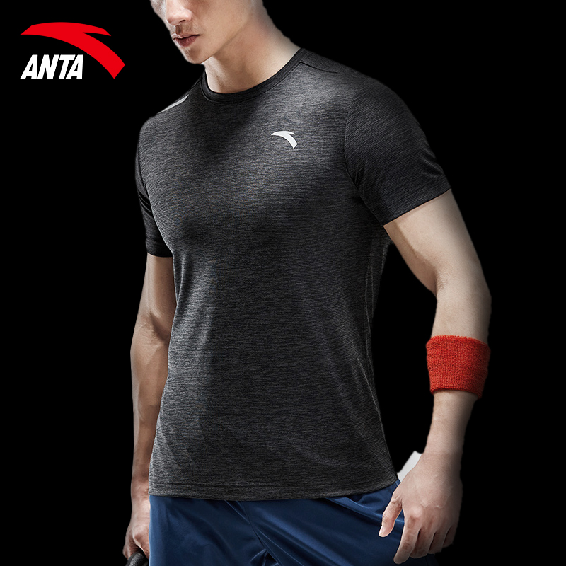 Summer New official website Flagship Fake one penalty ten -4 base Black round collar -7 base Black round collar -6 Basic Black Tight Fit New Men's Sport Short Sleeve Anta Summer New Short