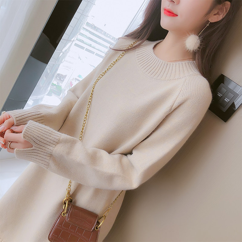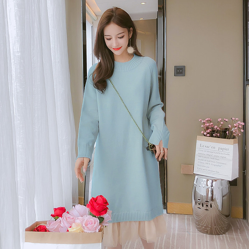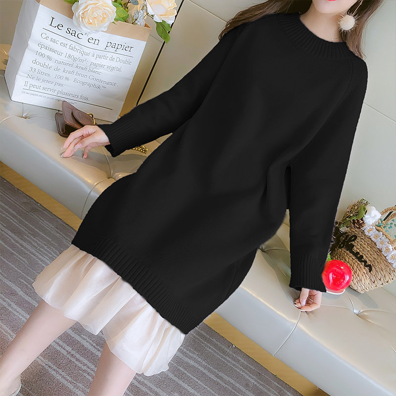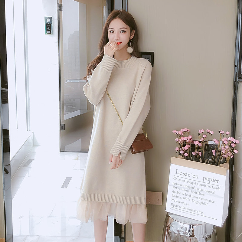 With coat and skirt, mid-length version, sweater skirt, over-the-knee chiffon stitching, thickened dress, student casual Korean version
