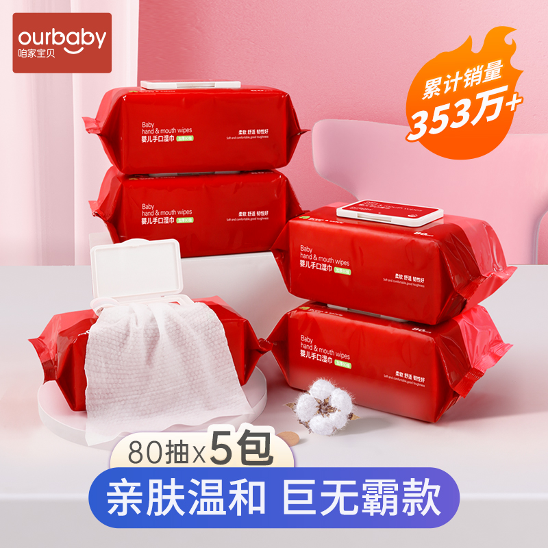 Our baby thickened wet wipes Baby face towels Disposable baby hand and mouth wet wipes large packaging 80 pumping*5 packs