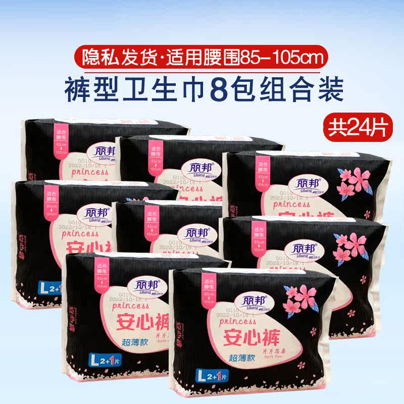 Libon sanitary cotton ultra-thin cotton soft surface reassuring pants for sleeping women's underwear type night with aunt scarf L code total of 24 bars
