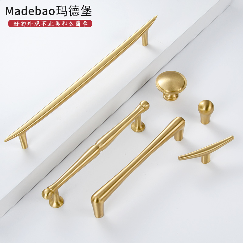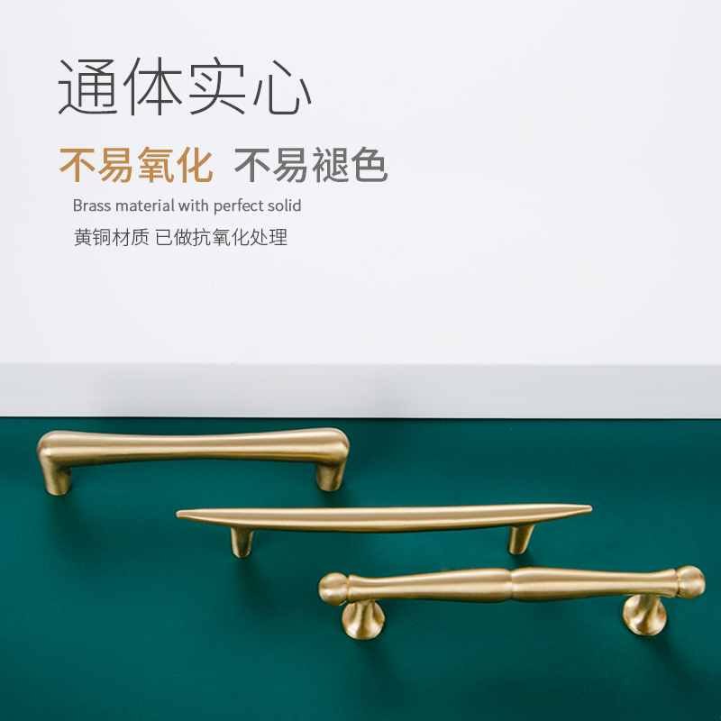 American-style pure copper solid light luxury handle European-style wardrobe drawer modern minimalist overall cabinet Nordic brass cabinet door handle