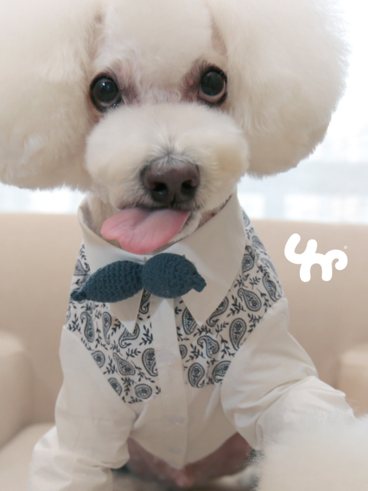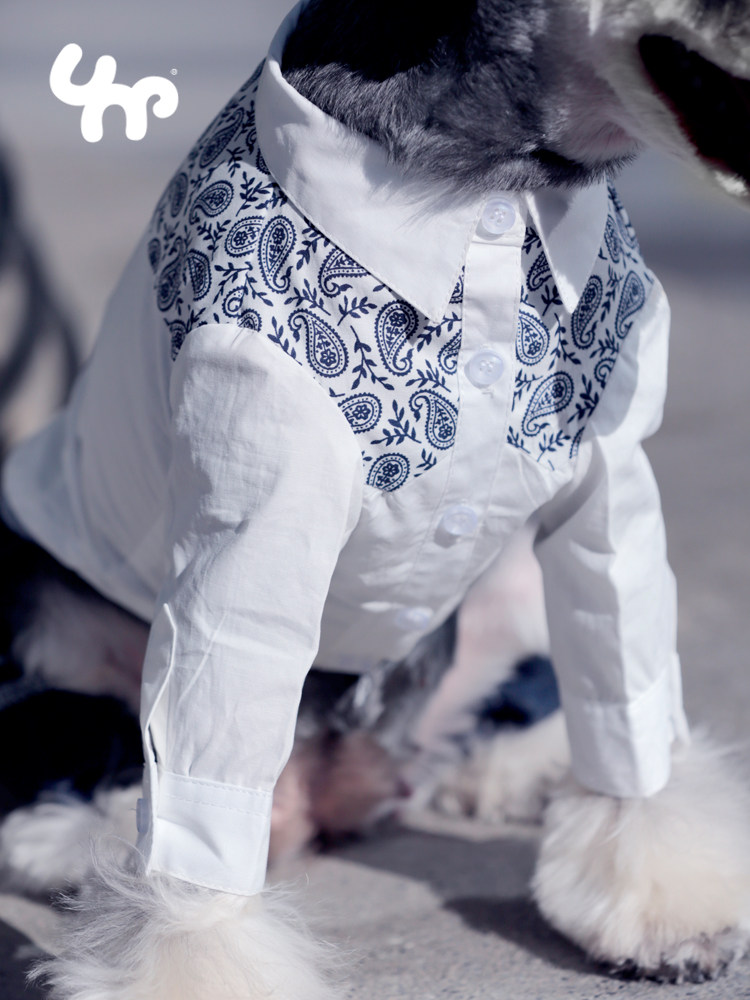 UNPET Bao dependents Summer thin Pet Dog Clothing Teddy Bib Bear Batan Wood Flowers White Shirt 100 Lapped Handsome shirt-Taobao