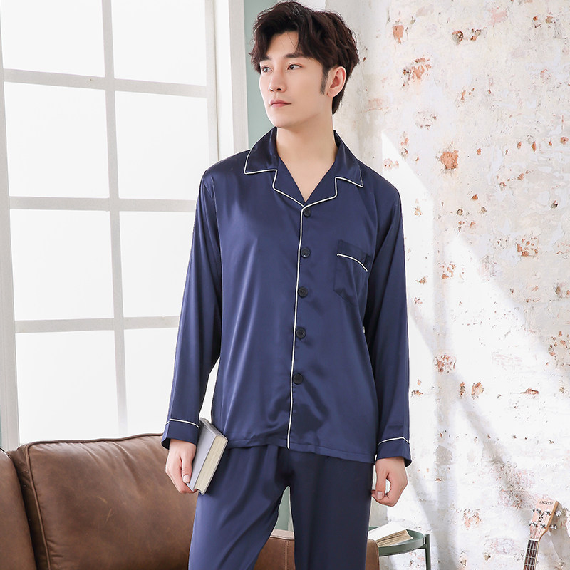 Pajamas men's summer ice silk thin long sleeve men's plus size summer dad spring and autumn simulation silk suit