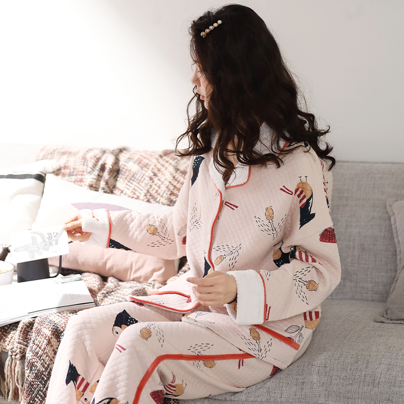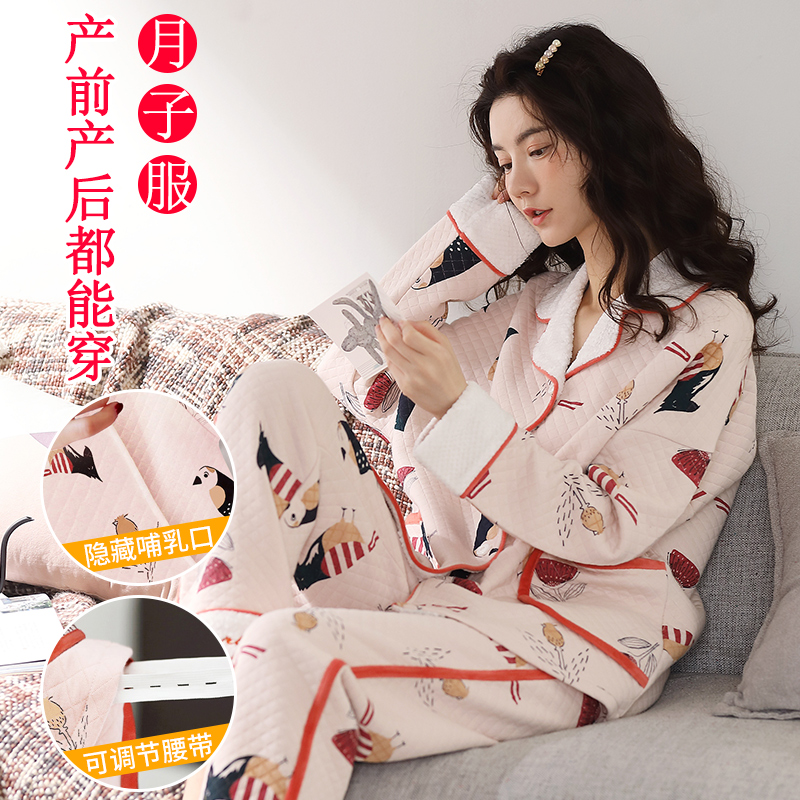 Cute Ding bear moon suit Autumn and winter three-layer thickened air cotton pregnant women pajamas Spring and autumn sandwich postpartum lactation lactation clothes