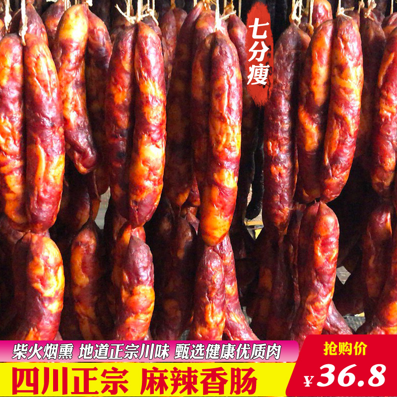 Authentic Sichuan spicy sausage Sichuan taste wide sausage farmhouse homemade cured meat Smoked with spicy enteral original flavor meaty sausage