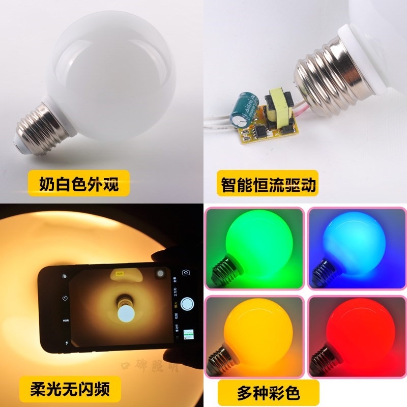 Color bulb Colorful warm color household red warm light yellow light night light e27 screw mouth warm yellow LED bulb 3 watts 1