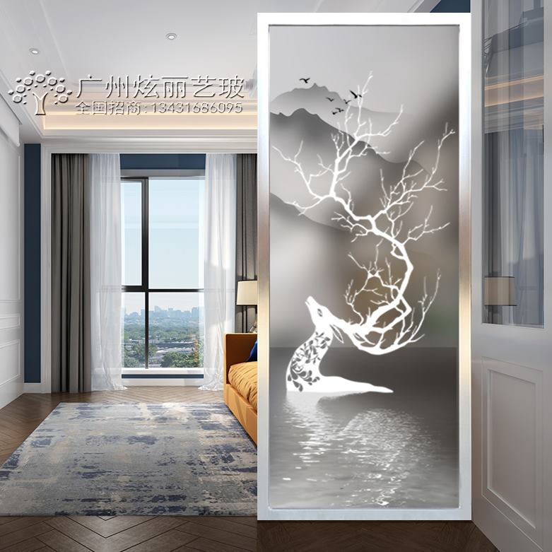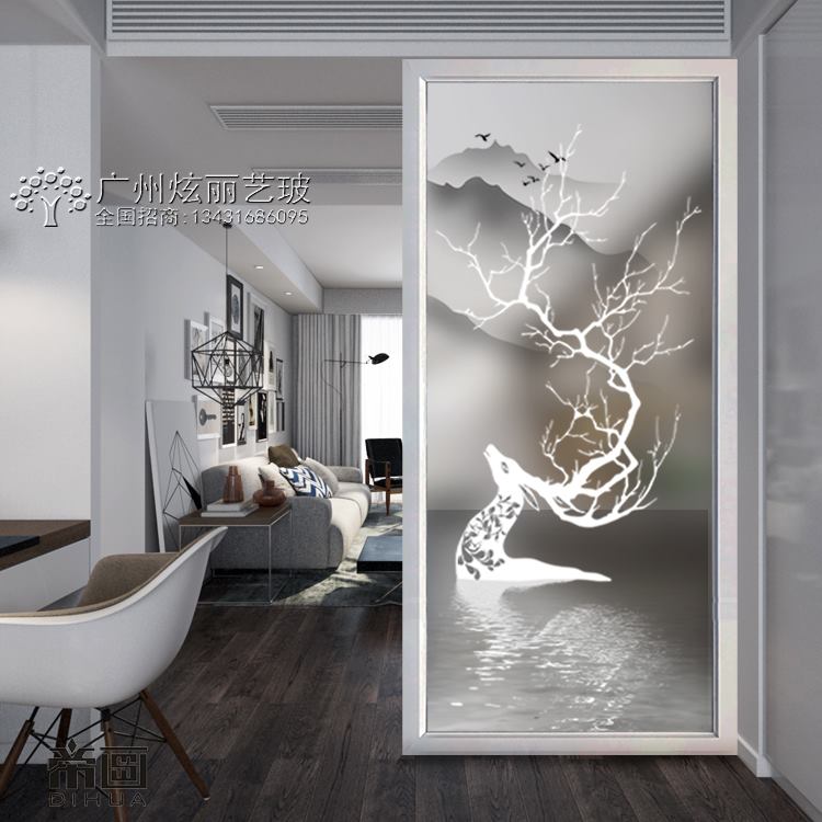 Art nouveau glass 3D stereoscopic screen Frosted translucent living room partition entry entrance aisle background wall Elk