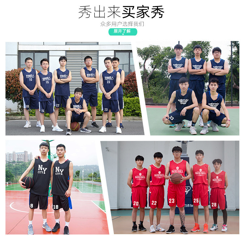 Basketball clothes suit men's student vest training team uniforms customised competition uniforms printed word sports clothes bookbinding jerseys