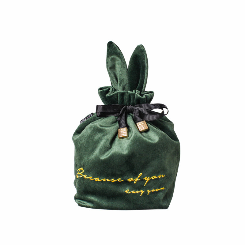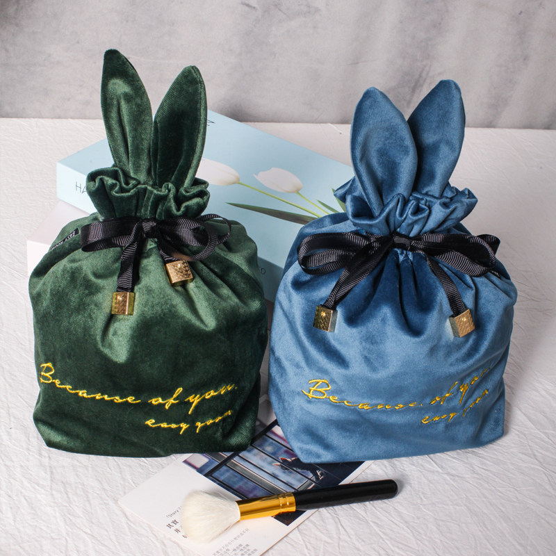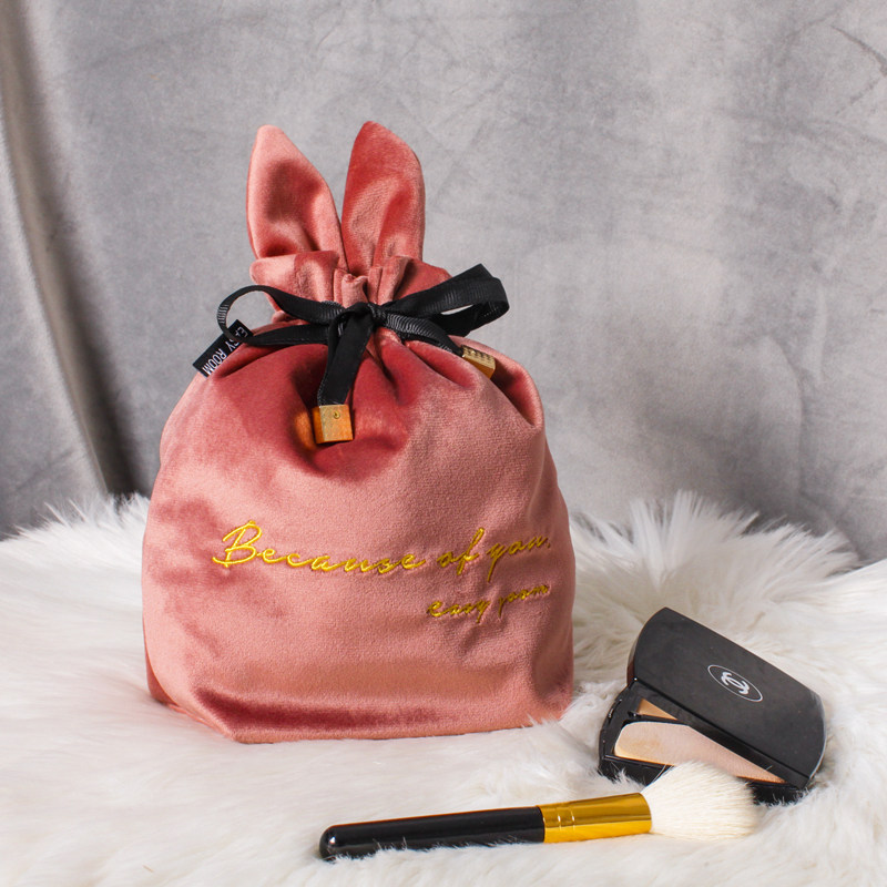 MZao Cute Rabbit Velvet Embroidered Cosmetic Bag Portable Women's Cosmetic Storage Bag Cosmetic Bag Drawstring Drawstring Pocket