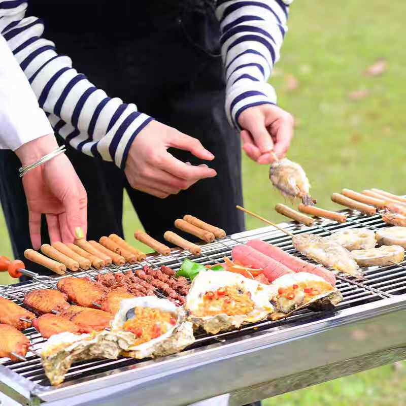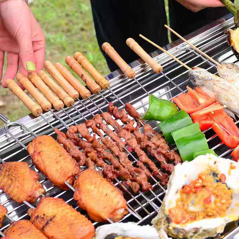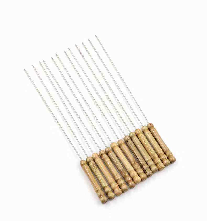 Home Outdoor Charcoal Grilling Accessories Tool Stainless Steel Wood Handle Barbecue Round Sign 12 Wearing Meat Steel Sign-Taobao