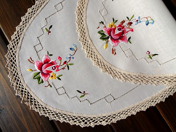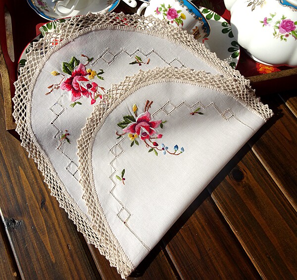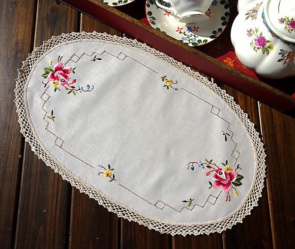 Foreign trade pure cotton extraction crochet edge retro hand embroidered cloth art cup cushion vase cushion dining cushion 28X46CM French style Rose-Taobao
