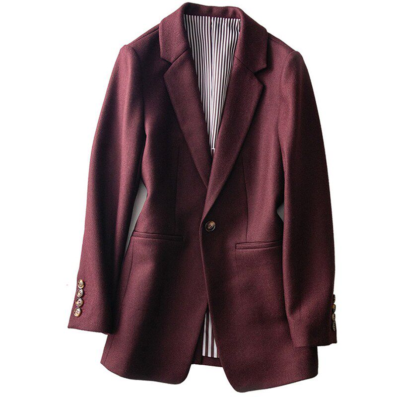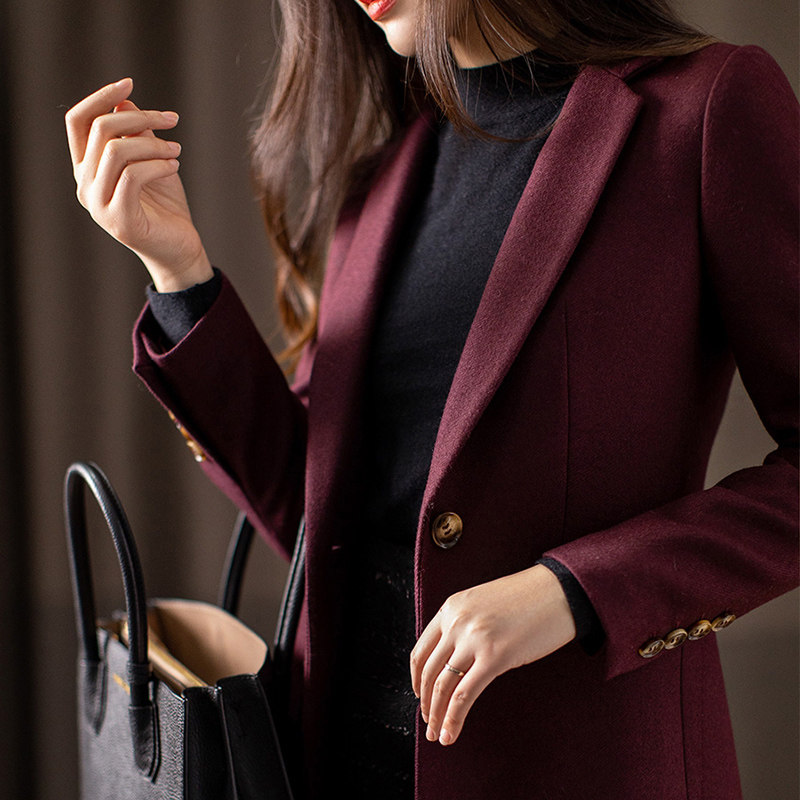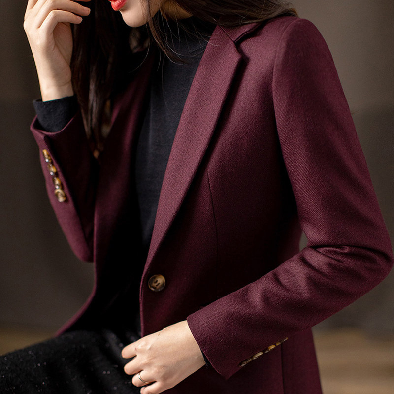 JOLIMENT wine red suit jacket woman 2022 autumn winter new temperament 100 hitch fit a grain button little western suit-Taobao