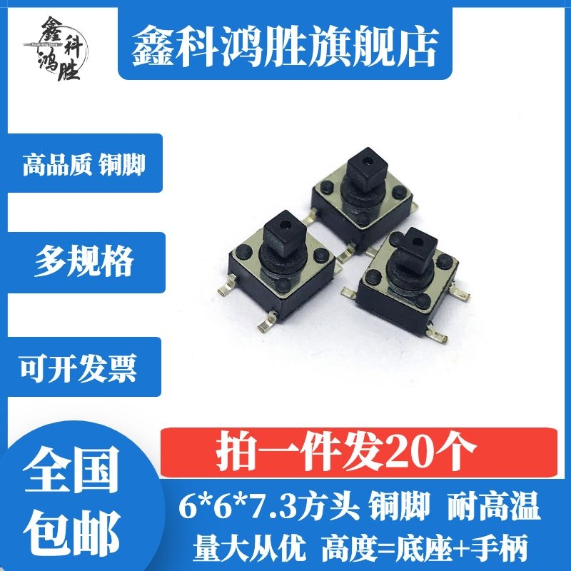 Square head 6 * 6 * 7 3MM light switch 4 feet vertical jiggling key switch Four feet 7 3 bronze foot patch