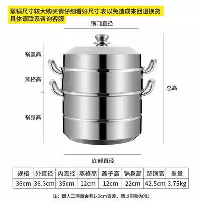 304 stainless steel steamer 36cm three-layer thick steamed buns steamer steamer two 3 layers household gas stove induction cooker