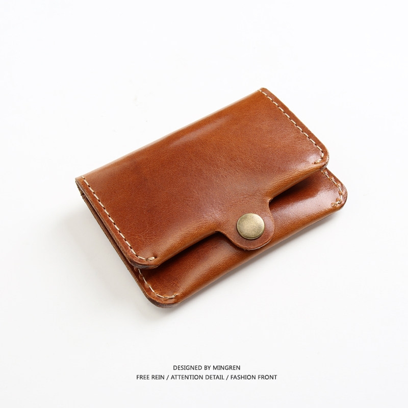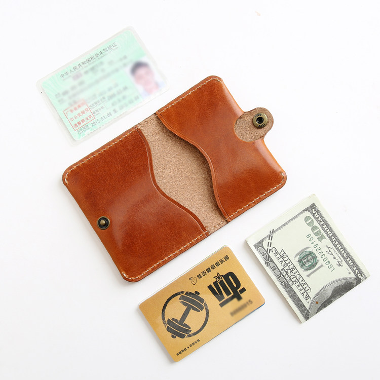 Homemade Artisanal Tanning Leather Wallet for Men Short Money Small Money Pack Retro Tide Card Bull Leather Card Bag Genuine Leather Driver's License Bag